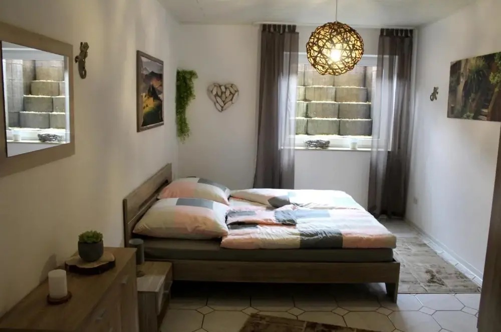 Weitere Informationen zu Ferienwohnung " Gecko 2 "Ferienwohnung Sonya in Andernach bietet geräumige Unterkünfte mit zwei Schlafzimmern und einem Wohnzimmer. Das Grundstück verfügt über Familienzimmer und einen privaten Eingang für komfortables Aufenthaltsgefühl. Moderne Ausstattung inklusive vollständig eingerichteter Küche mit Kaffeemaschine, Geschirrspüler und Mikrowelle sowie Waschmaschine, Arbeitsfläche und kostenlosem Badetücher.