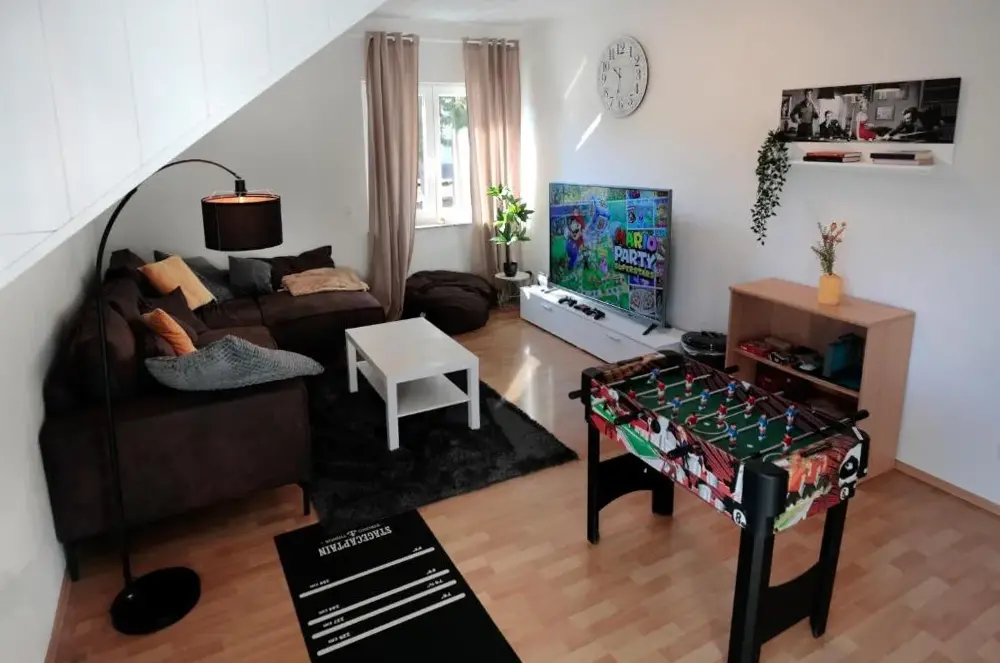 Weitere Informationen zu Goldhouse - Sauna, Whirlpool, Switch, Darts & mehrFerienwohnung Steffi in Andernach bietet geräumige Unterkünfte mit zwei Schlafzimmern und einem Badezimmer. Die Wohnung verfügt über eine moderne Küche, eine Küchenzeile sowie einen Essbereich und einen Arbeitsplatz. Eine Terrasse und ein Balkon ermöglichen gemütliche Outdoor-Erfahrungen, während der Blick auf den Garten die Ruhe des Ortes unterstreicht.
