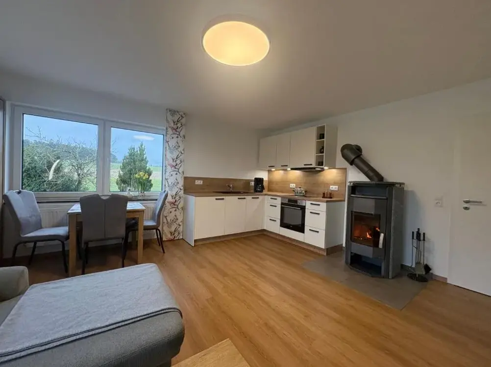 Das Kamin-Apartment Bodanum liegt am Ortsrand von Bodenbach in ruhiger Naturlage und bietet eine eigene Terrasse sowie einen Kaminofen für gemütliche Abende. Die frisch renovierte Wohnung wurde nach aktuellen Standards gestaltet und besticht durch eine moderne Ausstattung mit vielen praktischen Extras.