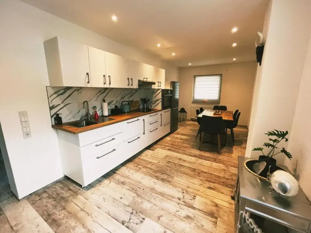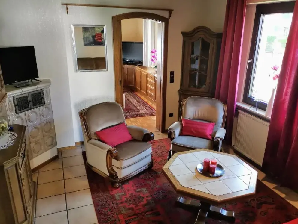 Fewo am Wingertsberg Glees Laacher See bietet geräumige Unterkünfte mit drei Schlafzimmern und einem Badezimmer sowie geflieste und Parkettböden für einen komfortablen Aufenthalt. Die Wohnung verfügt über eine sonnige Terrasse und einen Garten mit Sitzbereich, Picknickfläche und Barbecue-Einrichtungen ideal für Freizeitaktivitäten.
