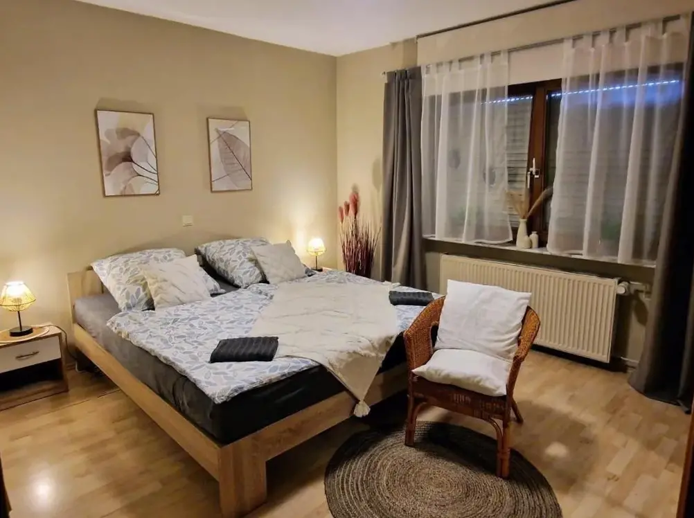Weitere Informationen zu Casa Di MonacoFerienwohnung Maria Laach 2 ist eine gemütliche Unterkunft in Glees, die mit zwei Schlafzimmern, einem Balkon sowie einer sonnigen Terrasse ausgestattet ist. Die Wohnung verfügt über eine vollständig eingerichtete Küche, einen Essbereich und ein Sofa-Bett, wodurch sich sowohl Familien als auch Paare wohl fühlen können.