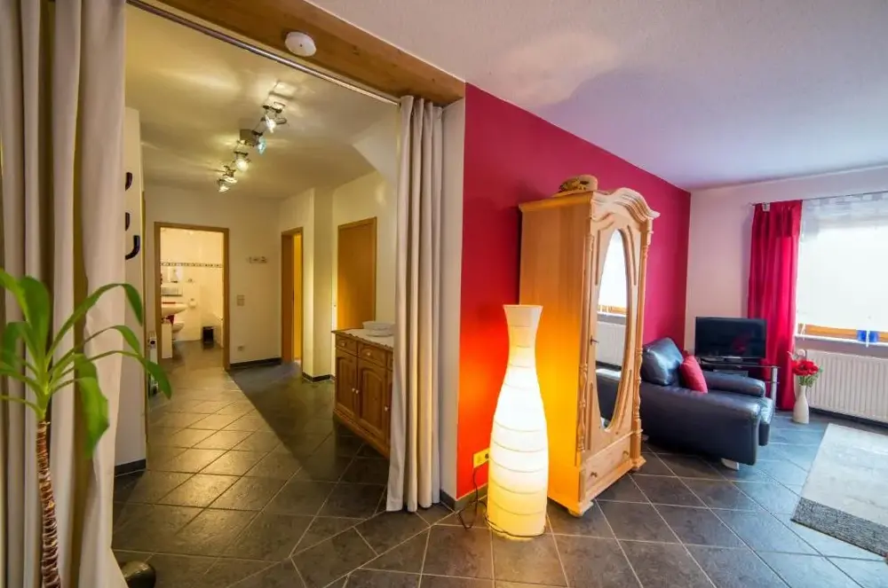 Weitere Informationen zu HalmhausFerienwohnung Maria Laach in Glees bietet eine geräumige Wohnung mit drei Schlafzimmern und einem Wohnzimmer. Die Unterkunft im Erdgeschoss verfügt über eine Terrasse sowie einen inneren Innenhof. Gäste profitieren von modernen Annehmlichkeiten wie kostenlosem WLAN, einer vollausgestatteten Küche und einem Essbereich.