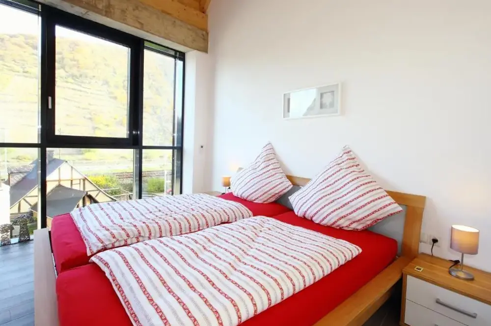 Weitere Informationen zu Ferienwohnung KlosterbergBequeme Unterkünfte: Mosel Ferienwohnung durch einfache Zimmer in Lehmen bietet eine geräumige Wohnung mit drei Schlafzimmern und einem Wohnzimmer. Das Grundstück umfasst eine Terrasse und ein kostenloses WLAN, um einen angenehmen Aufenthalt zu gewährleisten. Moderne Annehmlichkeiten: Die Gäste können eine voll ausgestattete Küchenzeile, eine Waschmaschine und einen Work Desk genießen.