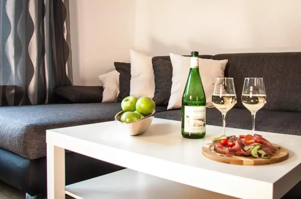 Weitere Informationen zu Ferienwohnung MoselliebeDas Moseltor zu Koblenz ist eine geräumige 4-Sterne-Wohnung mit zwei Schlafzimmern und einem Wohnzimmer im Erdgeschoss. Die Unterkunft verfügt über eine Terrasse sowie einen Balkon mit Ausblick auf den Berg. Moderne Ausstattungsmerkmale umfassen kostenlose WLAN-Zugang, eine gut ausgestattete Küchenzeile, eine Waschmaschine und einen Essbereich.