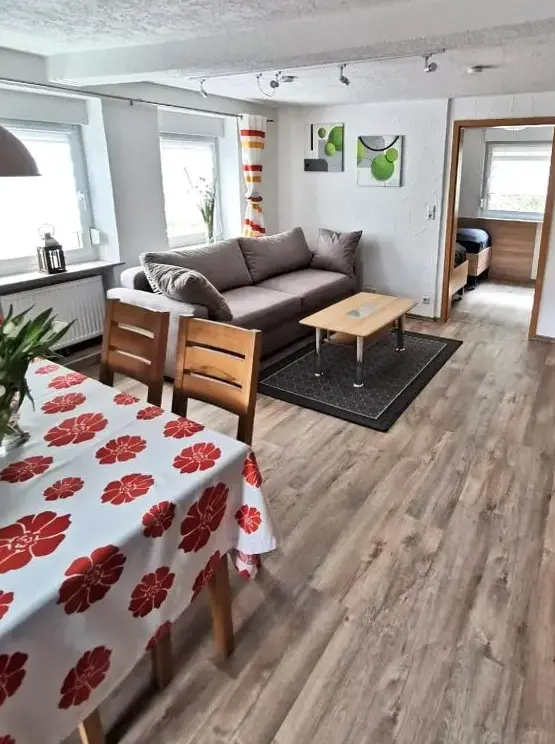 Weitere Informationen zu Ferienwohnung LöwenburgFerienwohnung Am Salzbach in Lemberg bietet eine komfortable Unterkunft mit einem Schlafzimmer und Wohnzimmer. Die Wohnung verfügt über eine vollständig eingerichtete Küche, Essbereich sowie Parkettböden. Außenanlagen umfassen einen Garten und eine Terrasse mit Blick auf das Grün. Zusätzlich gibt es einen Kamin im Freien, einen Sitzbereich und ein Picknickareal.