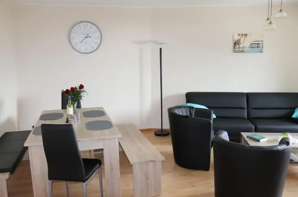 Weitere Informationen zu Haus NirgendwoBequeme Unterkünfte: Müller Comfortable Holiday Residence in Lüttzkampen bietet ein Ferienhaus mit zwei Schlafzimmern und ein Bad mit einem Garten und kostenlosen WLAN. Die Immobilie umfasst eine gemeinsame Küche mit Küchenzeile, Waschmaschine und Geschirrspüler.