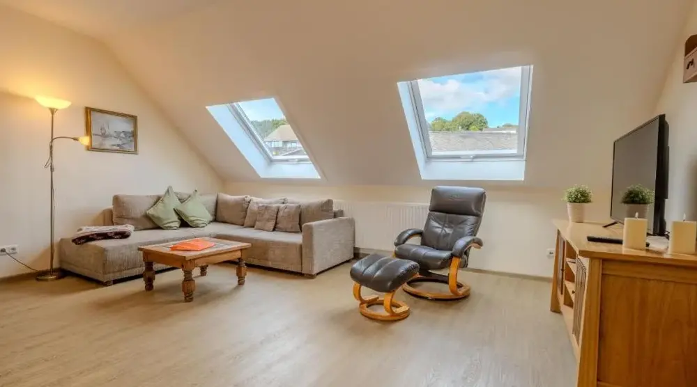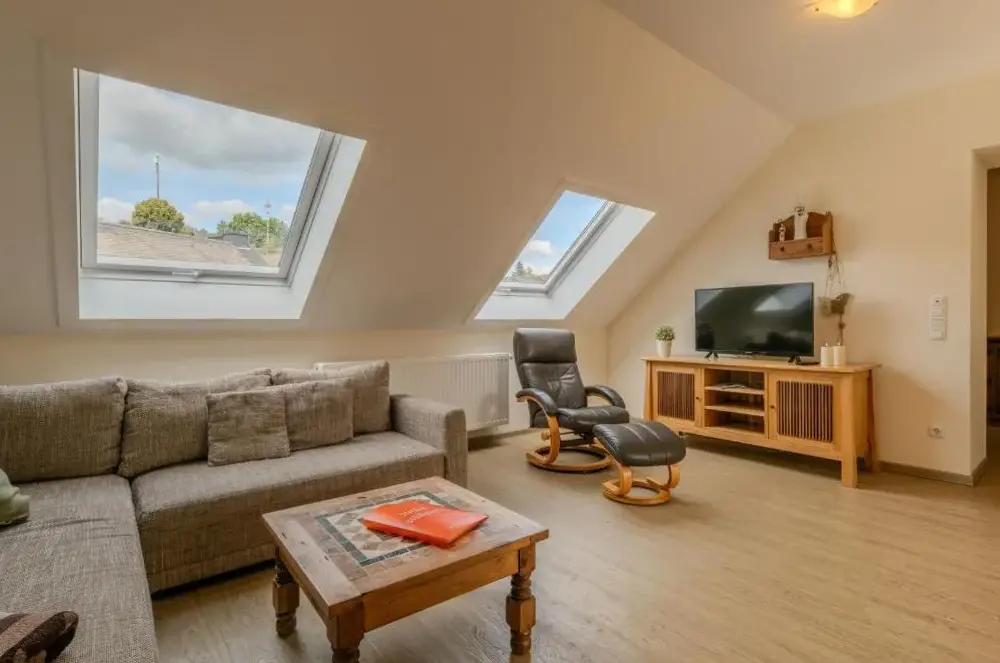 Weitere Informationen zu Haus MeertenEifeeloft - Eifel erleben in Neroth bietet geräumige Unterkünfte mit moderner Ausstattung und einer sonnigen Terrasse sowie Zugang zu einem Garten. Die Wohnung im Erdgeschoss verfügt über ein Schlafzimmer, ein Bad mit Dusche und eine vollständig ausgestattete Küche mit Geschirrspüler und Ofen.