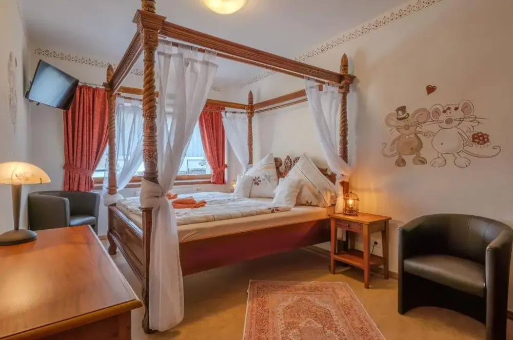 Weitere Informationen zu Anna Ferienwohnung am EifelsteigDas Hotel Restaurant Zur Neroburg in Neroth bietet bequeme Unterkünfte für Familien mit privaten Badezimmern, hypoallergener Bettwäsche und kostenlosem Badematerial. Jedes Zimmer verfügt über einen Schreibtisch, Fernseher und Garderobe für einen angenehmen Aufenthalt. Im familienfreundlichen Restaurant werden europäische Gerichte sowie vegane und vegetarische Speisen angeboten.