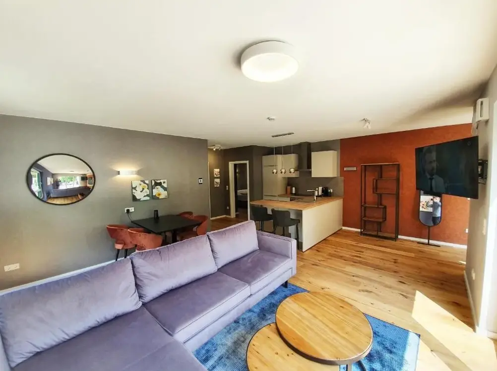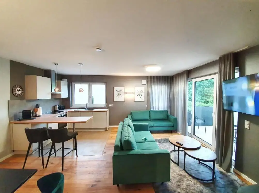 Weitere Informationen zu Erasmus Smart - Design B&BDie Erasmus Lodge bietet modern eingerichtete Ferienwohnungen in zentraler Lage am 13 Kehrbachstraße, 54441 Trassem, ideal für entspannte Aufenthalte mit Familien oder Gruppen. Die Wohnungen überzeugen durch hochwertige Ausstattung und ein harmonisches Ambiente: großzügige Schlafbereiche mit bequemen Betten, ein geräumiger Wohn- und Essbereich sowie drei Smart-TV-Geräte sorgen für individuelle Unt