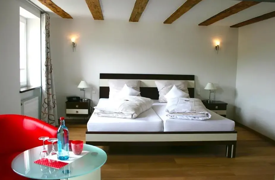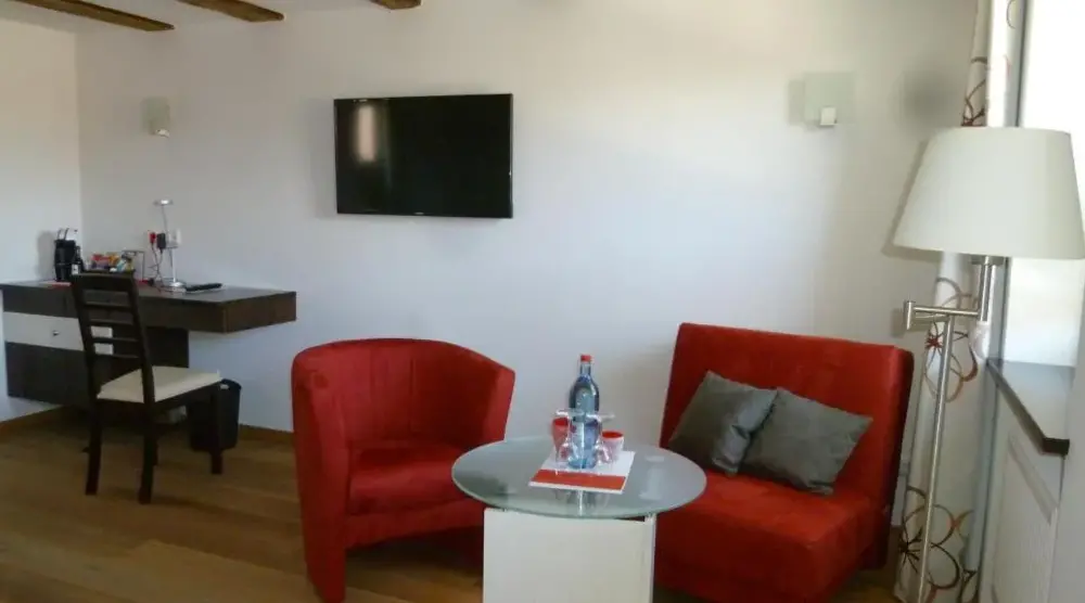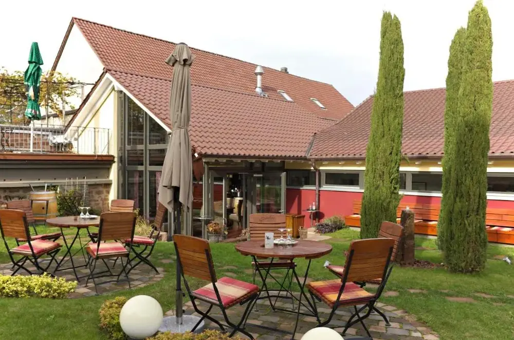 More information about Gästehaus RöhmWein-Domizil Brennofen in Ilbesheim provides comfortable accommodations featuring family rooms equipped with private bathrooms, tea and coffee makers, and free WiFi. Each room includes a work desk, television, and parquet flooring. The inn’s restaurant serves German cuisine with vegetarian, gluten-free, and dairy-free options, complemented by a buffet breakfast.