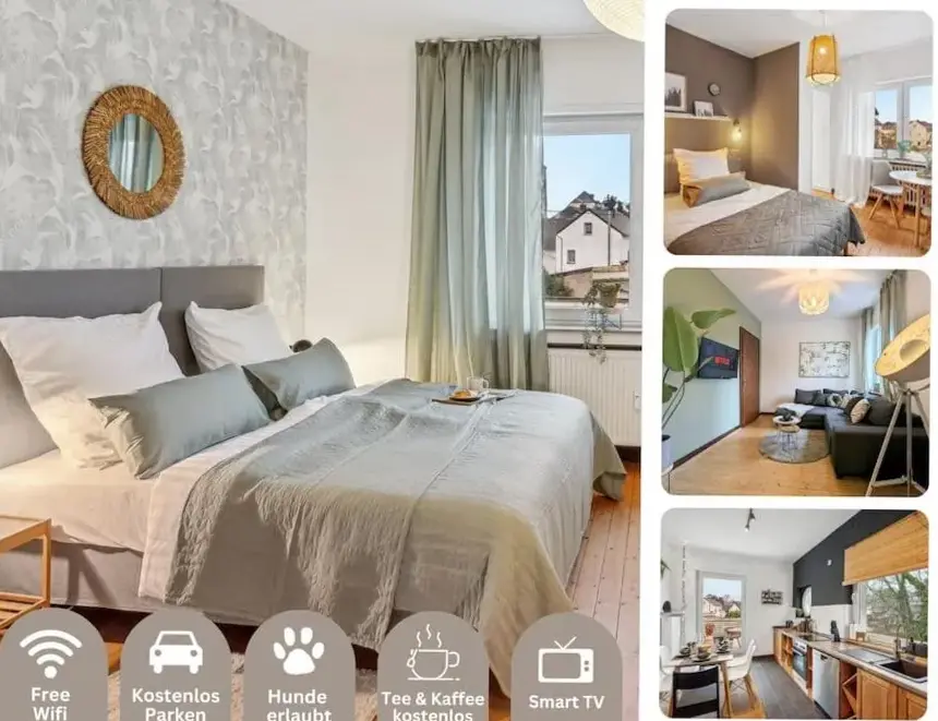 Meer informatie over Boutique-Hotel "Stilvoll"Ferienwohnung Weber-Rolinger is een comfortabel appartement in Andernach dat beschikking heeft over twee slaapkamers en een woonkamer. Het appartement biedt een volledig uitgeruste kitchenette, een eigen badkamer en uitzicht op de tuin. Gasten kunnen zich ontspannen op het terras of in de tuin, waarbij ze gebruik kunnen maken van gratis internetverbinding.
