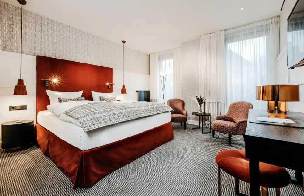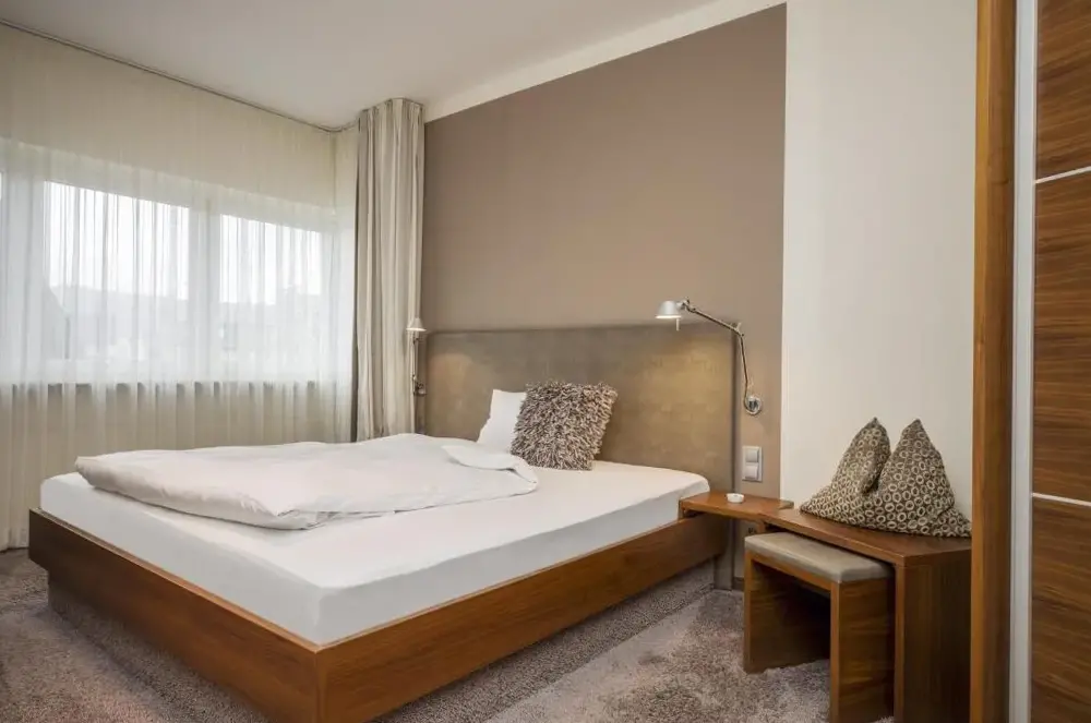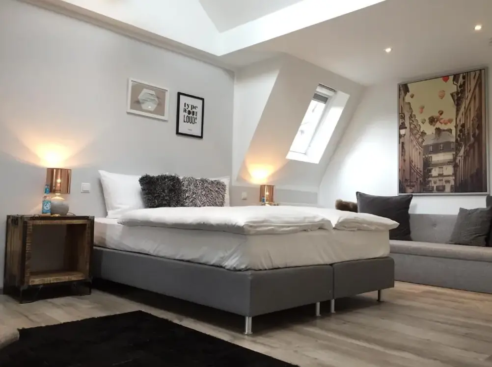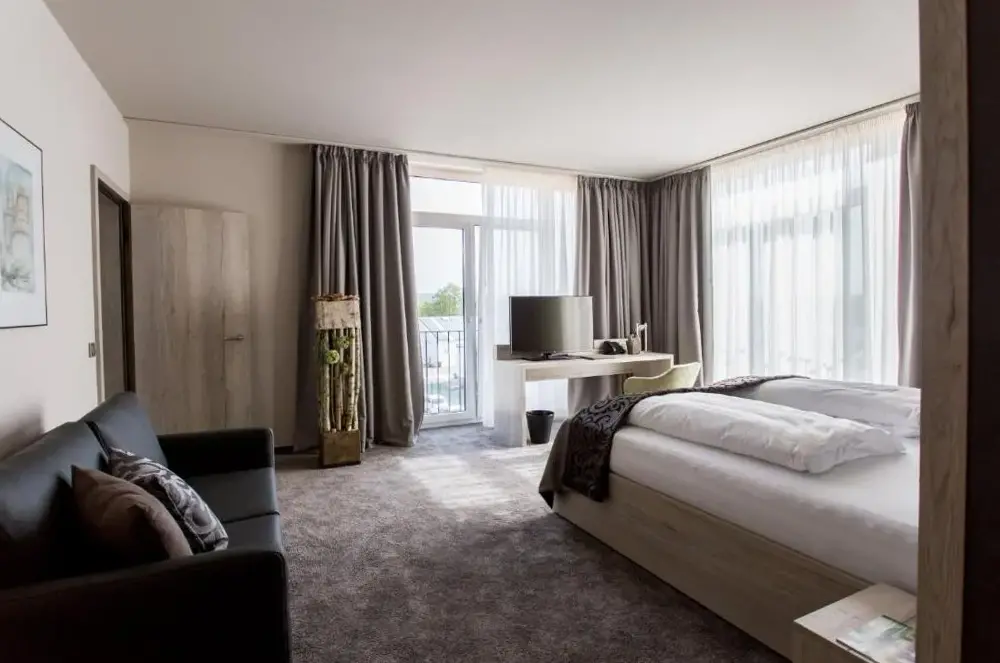 Meer informatie over Monte Mare Sauna-Spa-Sports-HotelBoutique-Hotel 'Stilvoll' ligt op slechts 500 meter van de rivier de Rijn en biedt lichte accommodatie met een elegante, modernere inrichting. Alle kamers zijn uitgerust met moderne meubels en een flatscreen-TV met kabelzenders. De badkamer is voorzien van een regendouche, een haardroger en gratis toilettarieven.