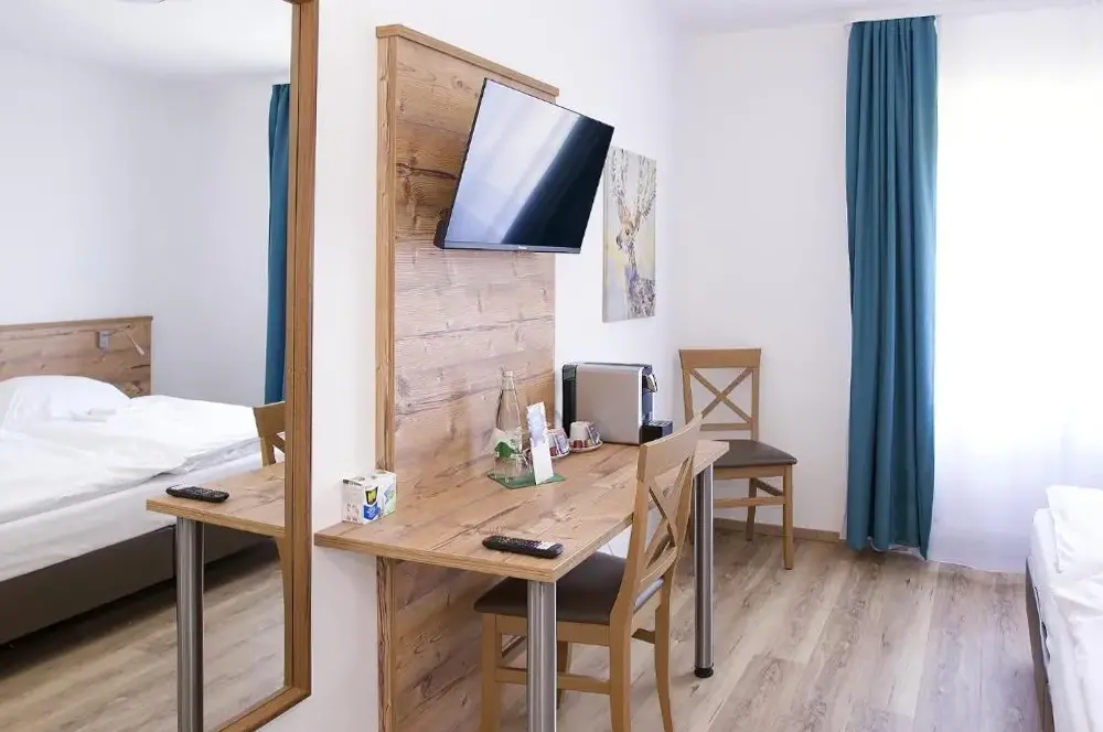 Meer informatie over Antel 42Keller Höhe in Andernach biedt comfortabele familiekamers met eigen badkamer, uitziend op de tuin en modern ingerichte ruimtes. Elke kamer is uitgerust met een werkbureau, tv en gratis wifi. Gasten kunnen gebruik maken van een prachtige tuin, zitplekken buiten en gratis privéparkeeroplossing op het terrein. Extra services omvatten privé-check-in/-check-out, expressdiensten en fietsparkering.