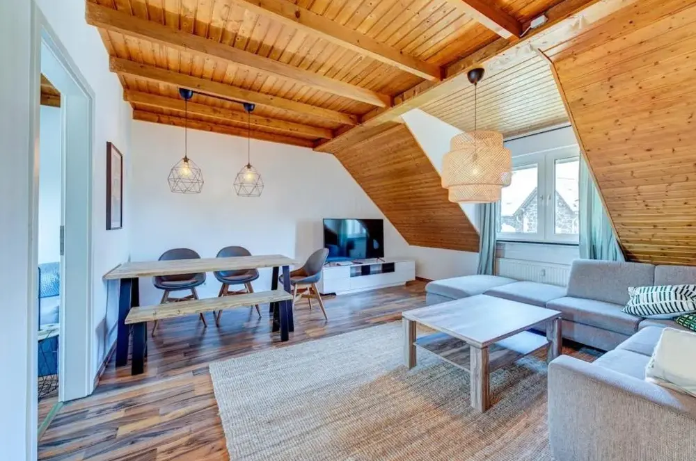 Dein Ferienhaus in Andernach biedt een ruim en modern appartement met twee slaapkamers en een woonkamer. Het onroerend goed is recent gerenoveerd en beschikt over comfortabele voorzieningen zoals een wasmachine, een volledig uitgeraste keuken met koffiemachine, vaatwasser en magnetron. Buiten beschikken de accommodatie over een eettafel, bankbed, tv en zithoek.