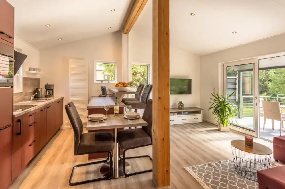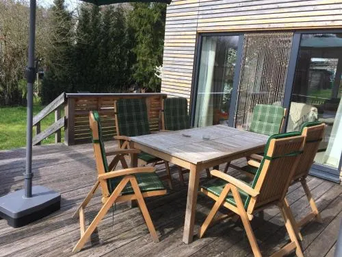 Więcej informacji o Chalet Stadtmauer I Terrasse I Seeblick I WandernEifel Relax w Hillesheim oferuje przestronne mieszkanie z jednośrodkową sypialnią i nowoczesną łazienką. Salon wyposażono w sofę oraz jadalnię, zapewniając komfort dla gości. Na terenie dostępna jest przestrzeń zewnętrzna z tarasem słonecznym i ogrodem idealnym do relaksu. Mieszkanie umożliwia korzystanie z darmowego Wi-Fi, kompletnego aneksu kuchennego oraz pralki.