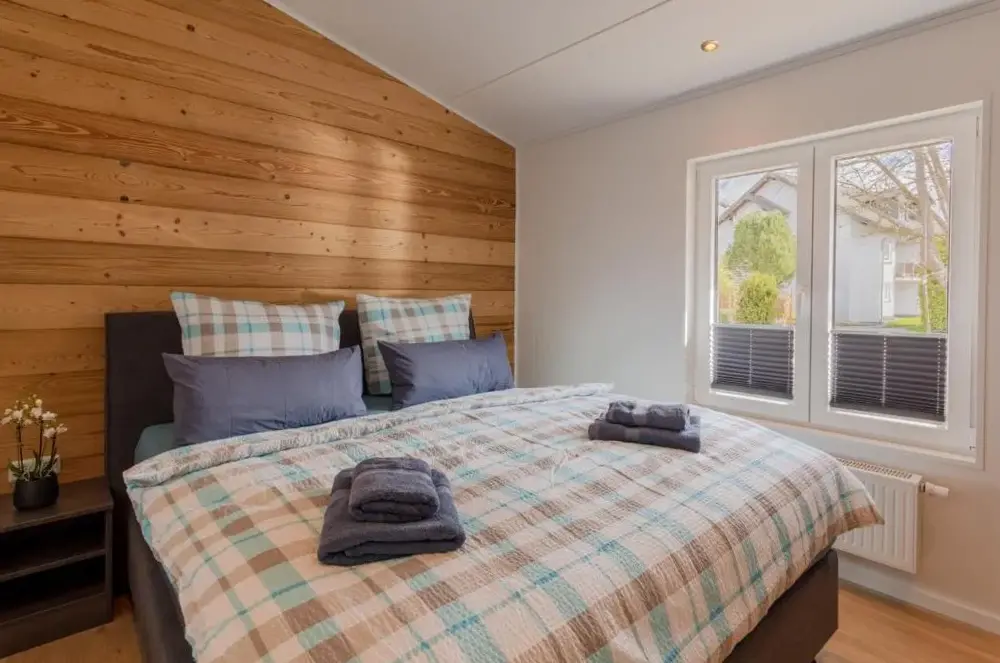 Więcej informacji o Ferienhaus Eifelsteig Krimihauptstadt HillesheimChalet Seeblick I Terrasse I Aussicht I Wandern to idealne miejsce dla zwiedzających i miłośników natury. Oferta obejmuje dwie sypialnie oraz prywatną łazienkę. Dom wakacyjny został wyposażony w nowoczesną kuchnię z zmywarką, piekarnikiem, kuchenką gazową i tosterem. Udogodnienia obejmują balkon, jadalnię oraz przestrzeń życia. Gospodarze zapewniają darmowe Wi-Fi, 24-godzinną recepcję oraz grill.