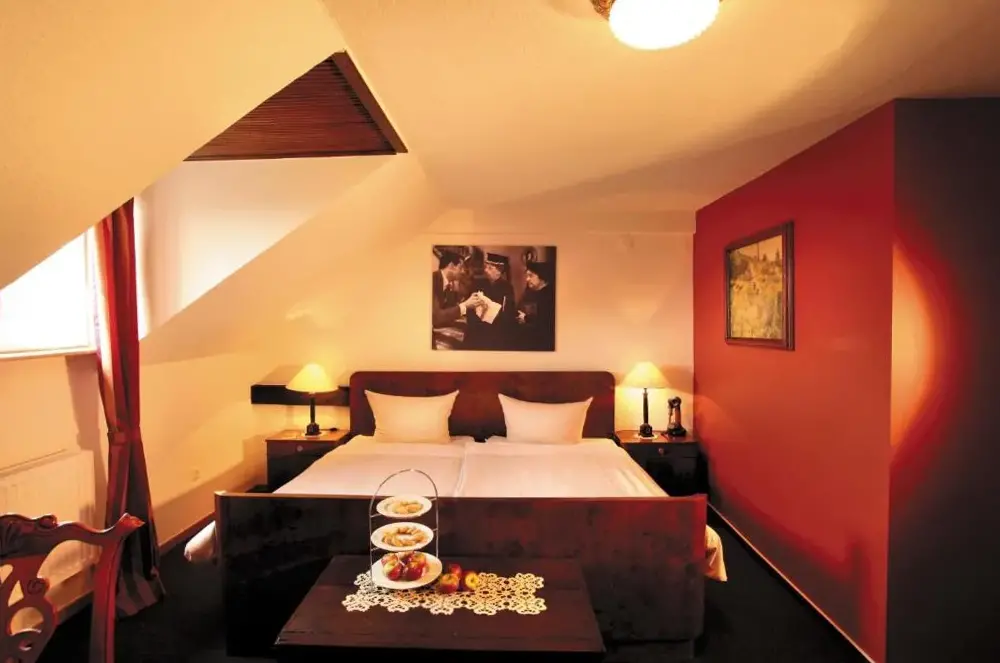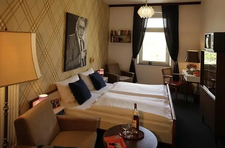 Więcej informacji o Chalet Bachwies I Terrasse I Seeblick I WandernEIFELkrimihotel oferuje indywidualnie zdobione pokoje inspirowane motywami kryminalnymi w średniowiecznym mieście Hillesheim. Hotel położony jest 656 stóp od największego niemieckiego archiwum morderstwa. Każda izba ma unikalny wystrój oparty na znanych postaciach detektywistycznych takich jak Alfred Hitchcock czy Sherlock Holmes. Wszystkie pokoje są wyposażone w telewizję oraz prywatną łazienkę.