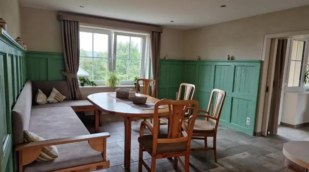 Więcej informacji o LubaHillesheim Romantic Escape to wygoda i spokój w nowoczesnym mieszkaniu z jednośrodowym apartamentem. Mieszkanie oferuje salę ze stołem do posiłków oraz kompletną kuchnię z lodówką, mikrowarstwą, piekarnikiem i palnikami. Taras i ogrody zapewniają relaksujące środowisko z widokiem na jezioro i tereny ogrodowe.
