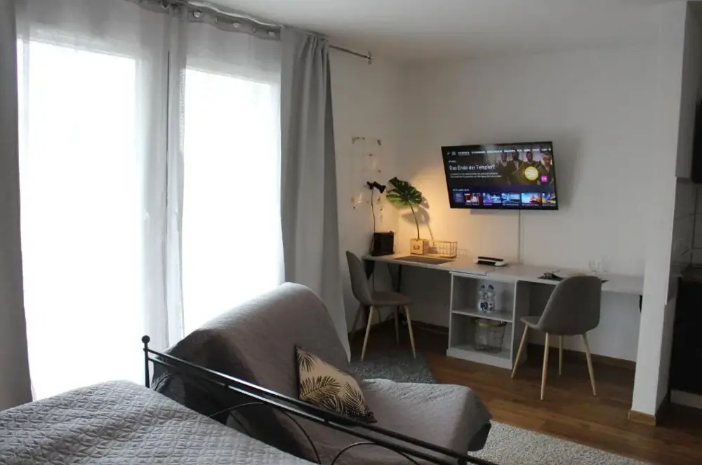 Więcej informacji o Moxy LudwigshafenApartment Sudermann to wygodne mieszkanie w Ludwigshafen am Rhein, które oferuje przestrzeń z jednośrodowym apartamentem wyposażonym w balkon oraz taras. Mieszkanie charakteryzuje się widokiem na ogrodników i kompletną kuchnię. W pomieszczeniu znajdzie się biurko do pracy, rozkładane łóżko oraz darmowe połączenie internetowe.