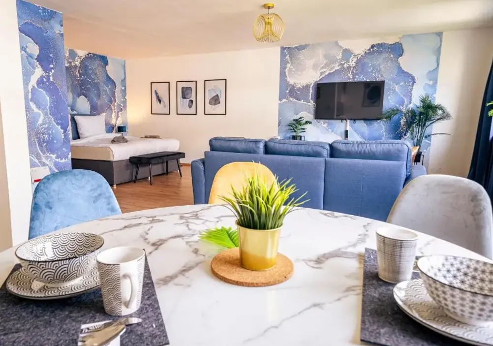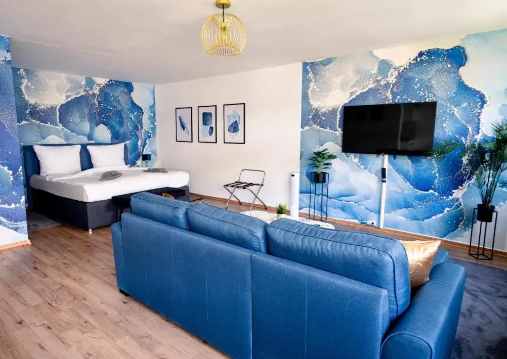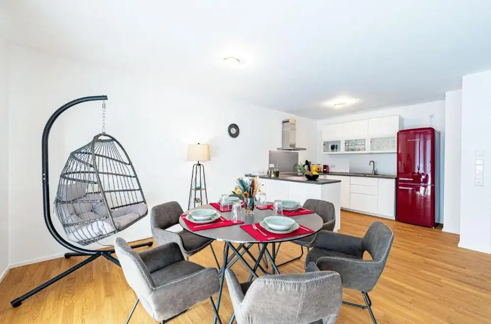 Więcej informacji o Eulennest-luApartament FLAIR w stylowym wystroju położony jest pod adresem 62 Halbergstraße, 67061 Ludwigshafen am Rhein, oferując gościom wygodne warunki pobytu z dostępnością bezpłatnego Wi-Fi oraz możliwością parkowania. Apartament cieszy się uznaniem za przemyślane aranżacje przestrzeni i doskonałe czystość, co potwierdzają liczne opinie gości.