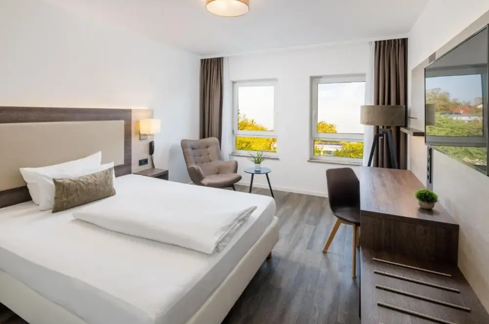 Więcej informacji o Hotel Newton LudwigshafenRheinCity Hotel & Boardinghouse oferuje komfortowe zakwaterowanie w centrum Ludwigshafen am Rhein. Wszystkie pokoje posiadają telewizor z ekranem平板 oraz dostęp do kanałów satelitarnych. Każdy pokój ma prywatną łazienkę i obsługę kuchenną z mikrofalówką, kotłem do gotowania, tosternikiem oraz czajnikiem elektrycznym. Oferujemy również klimatyzację i biurko w każdym pokoju.