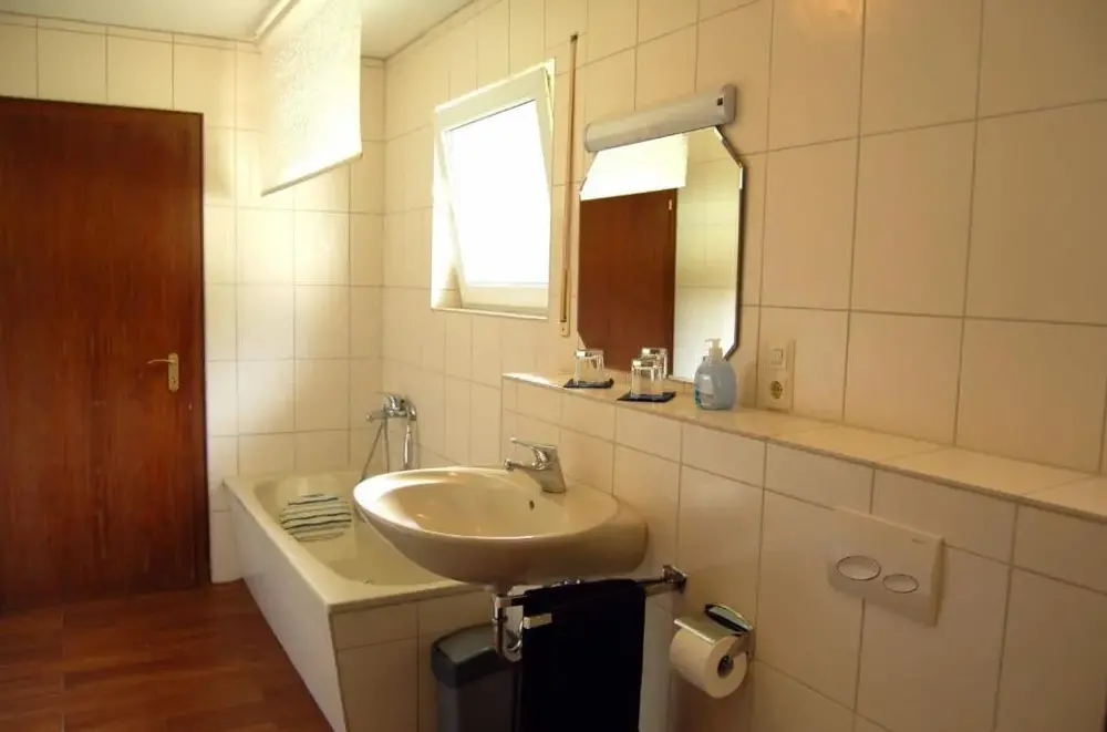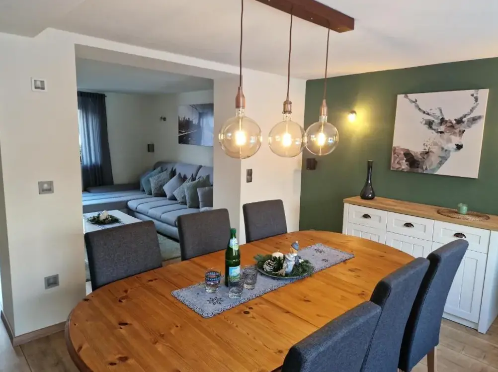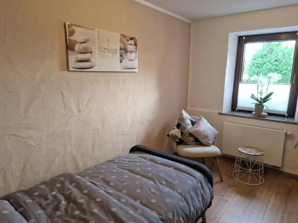 Ferienwohnung am Wasserfall to przestronne mieszkanie w Nohn, które oferuje trzy sypialnie oraz dwie łazienki. W salonie znajdziesz wygodną sofę i telewizor, umożliwiające komfortowy pobyt. Na terenie dostępny jest taras z meblami ogrodowymi oraz ogrodnik, idealny do relaksu. Mieszkanie配备 nowoczesną kuchnię z maszyną do kawy, lodówką, zmywarką, piekarnikiem i tosterem.