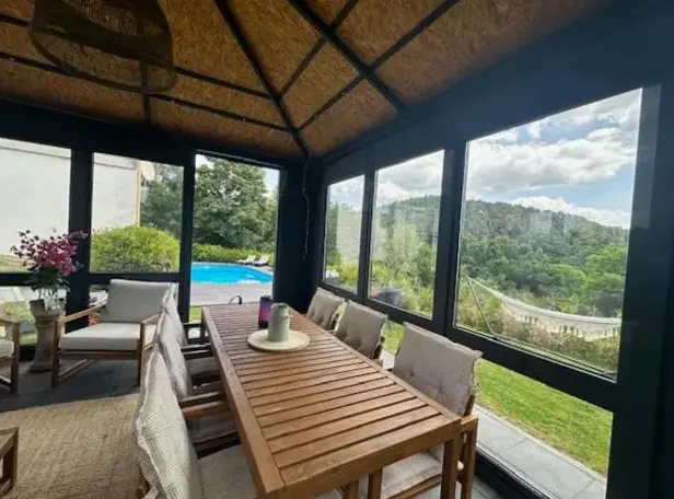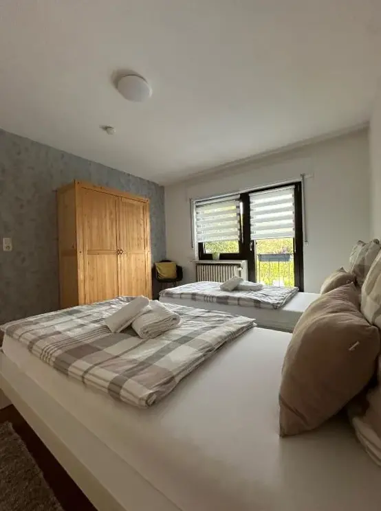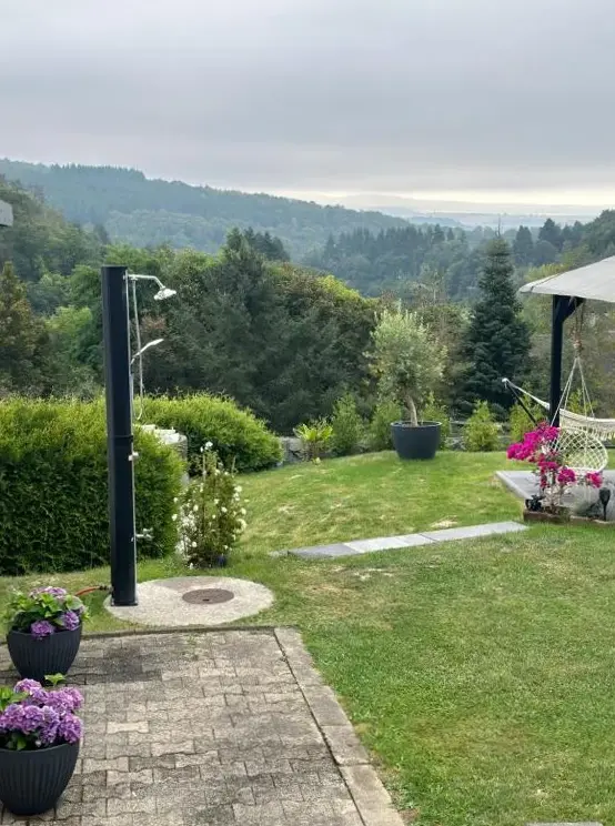 Ferienwohnung Panorama Oberkirn to przestronne mieszkanie z dwiema sypialniami i salonem, idealne zarówno dla par, jak i rodziny. Mieszkanie oferuje kompletnie wyposażony aneks kuchenny oraz balkon z widokiem na ogród. Goście mogą korzystać z basenu z widokiem, tarasu słonecznego i kominka na świeżym powietrzu.
