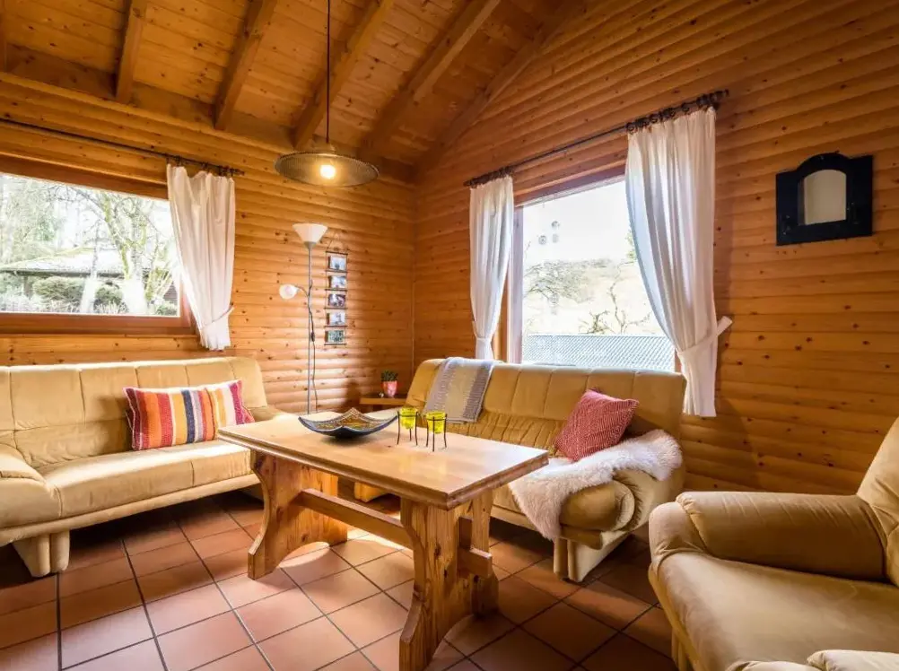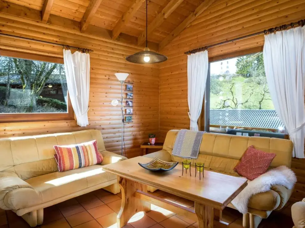 Więcej informacji o Haus 2 - Typ B (Blockhaus)Chalet w Reinskopf z kominkiem i balkonem to przestrzenny apartament położony w Schönecken w Niemczech. Oferuje dwie sypialnie oraz łazienkę, zapewniając komfort dla gości. Wyróżnia się nowoczesnymi udogodnieniami takimi jak darmowe Wi-Fi, kompletna kuchnia, pralka oraz ciepły kominek. Mieszkanie ma balkon z widokiem na ogród, meble ogrodowe i telewizor, co tworzy idealną przestrzeń do relaksu.