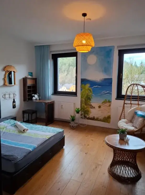 Więcej informacji o Fewo MichelsFerienwohnung Haus Schöneck to nowoczesne mieszkanie z jednośrodkową sypialnią i salonem, które oferuje gościom pełen komfort. Właściwie wyposażona kuchnia oraz prywatna łazienka umożliwiają samodzielną organizację pobytu, podczas gdy darmowe Wi-Fi gwarantuje dostęp do internetu w całych pomieszczeniach.