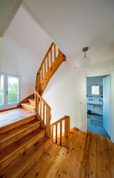 Mais Informações sobre Ferienhaus Müllers NestHaus-amBrunnen é uma casa de férias espaçosa situada em Nothweiler, ideal para famílias ou grupos que buscam conforto e tranquilidade. Oferece três quartos e dois banheiros, além de uma sala com lareira aconchegante e pisos de parquet. A propriedade conta com áreas externas como um terraço solar e um jardim bem cuidado, proporcionando espaço para relaxar.